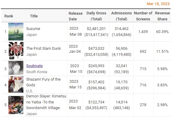 극장가 일본 애니메이션 열풍 ‘스즈메의 문단속’도 1위 [잇슈 연예] / KBS 2023.03.09.>>146
