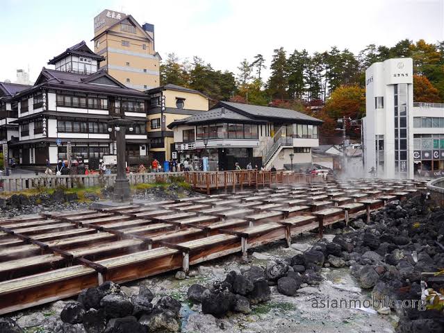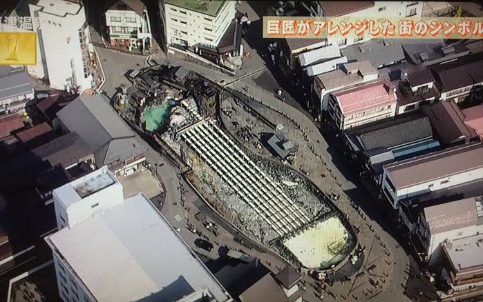 温泉じゃなくて、「湯畑」という温泉成分を沈殿させて採取する施設ですね