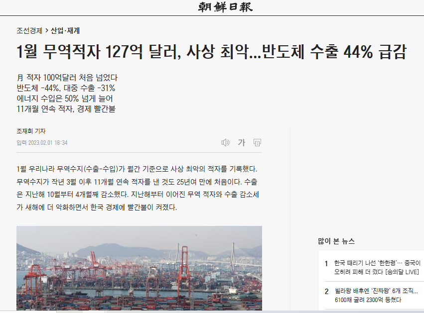 1月の貿易収支は127億ドルの赤字、史上最悪…半導体輸出44%急減