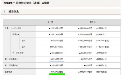 経常収支 11兆4,432億円の黒字