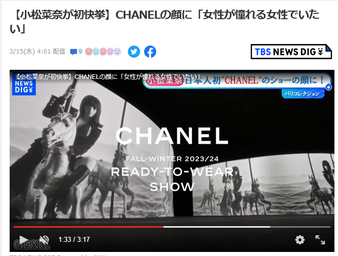 小松菜奈さんが、パリコレクションで発表された「シャネル(CHANEL)2023-24年秋冬コレクション」でショーのミューズを務めました。