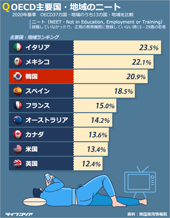 韓国の幸福水準は32カ国平均の73%も大きく下回った。