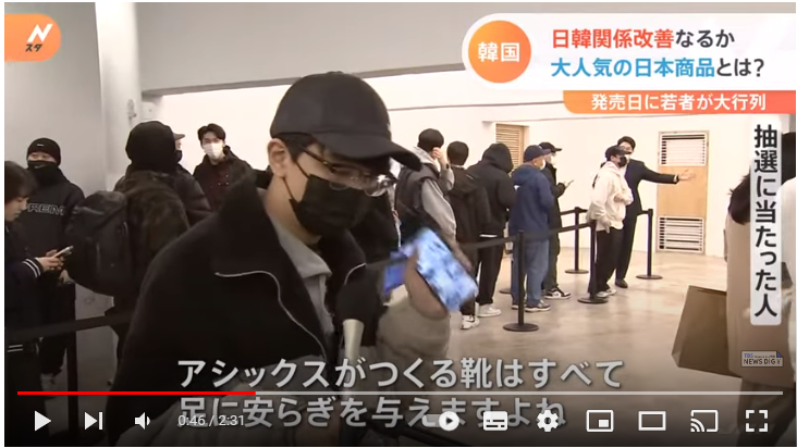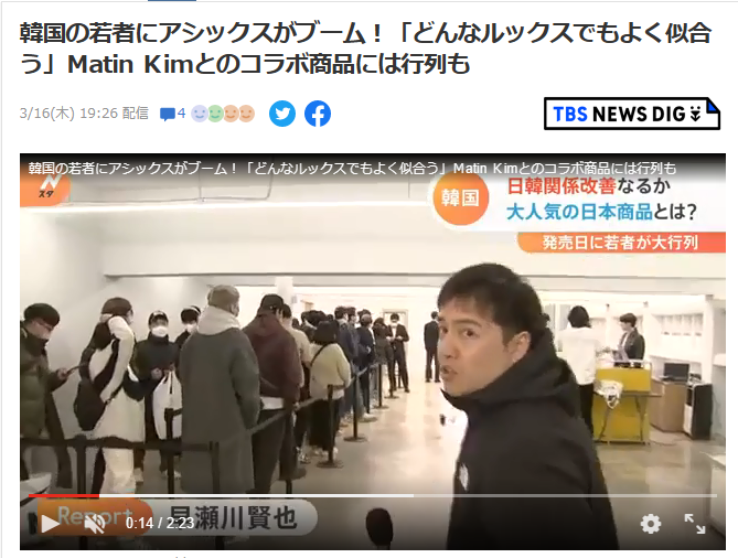 集まった人の目当ては、日本が誇る老舗スポーツメーカー、アシックスのスニーカー。最近、韓国の若者にファッションアイテムとして大人気です。アシックスを履く人「どんなルックスでもよく似合うスニーカーなので」