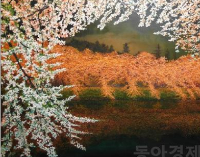 絵画を通じて幸福感、豊かさを伝える西洋画家チョン・サンヒョン作家。特色ある素材を探していたチョン作家は桜から魅力を発見した。特に夜に見た桜が濃艶で輝いていた。張り裂けそうな感情で、桜の花を描かなければならなかった。日本など有名な場所を探し回った。