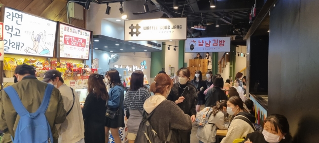 この日、原宿の明治通り沿いにある韓国料理店フードコート「K-TOWN(ケー・タウン)原宿」には数十人の客が集まっていた。ここで一番人気があるのは、インスタントラーメンの「ハンガン(漢江)ラーメン」だという。大学生のウエハラさん(20)は「友達と一緒にハンガンラーメンとトッポッキ(韓国もちのトウガラシみそいため)をシェアして食べると、韓国に行った気分になる」と言った。