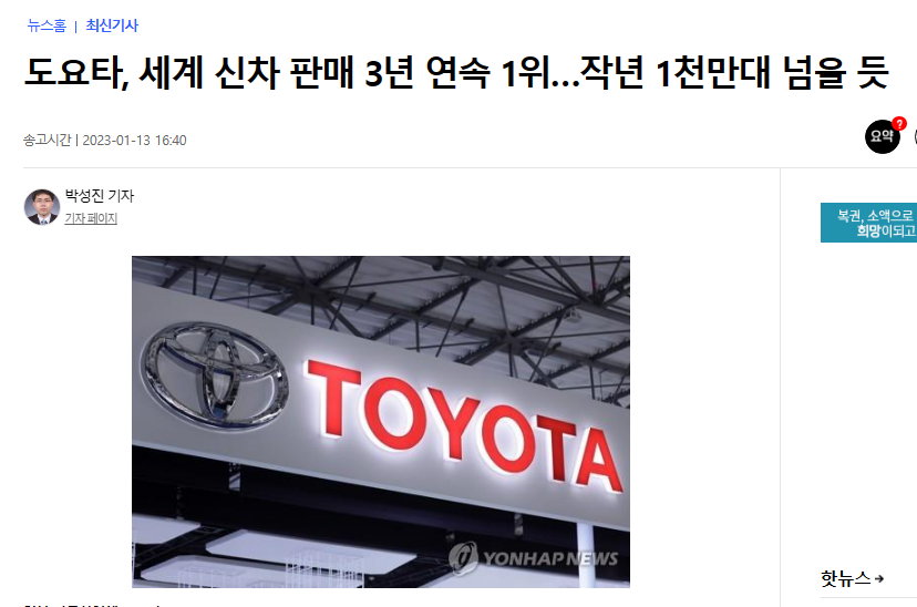 現代自動車+KIA、米国で3月に14万6698台販売トヨタが世界自動車販売1位を記録したのと比べると小さい話だな。