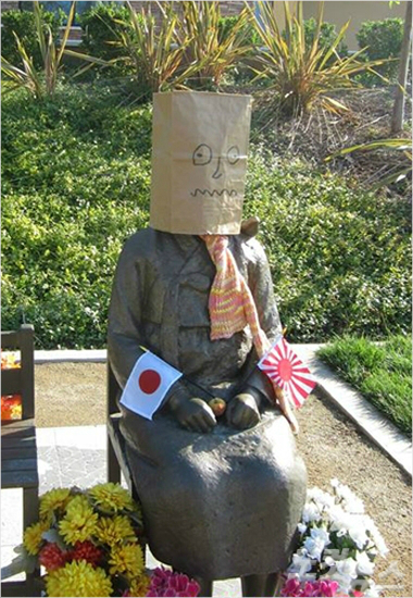 慰安婦像はいつから神や聖人になったんだよ?数十年、数百年の歴史のある石仏を100体以上破壊し、寺に安置してある仏像まで盗む民族にそんな殊勝な気持ちが有るとは知らなかったよ。日本の旗を置いてるんだから日韓友好ってことだろ(笑)