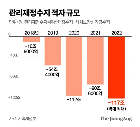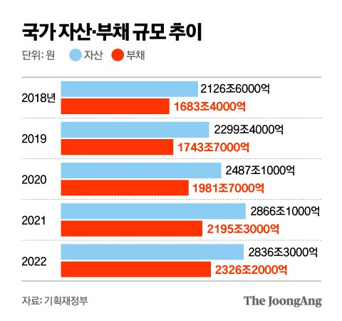 昨年、税収が大幅に増えたが、財政赤字は120兆ウォンに迫って過去最大となり、高金利の余波で国家保有資産は前年比でむしろ減少した。