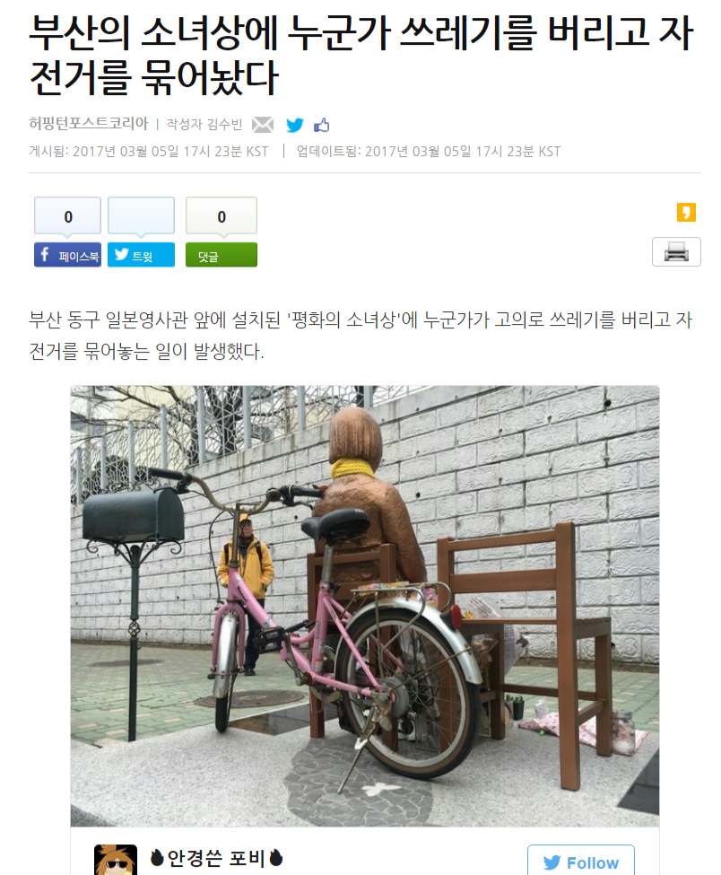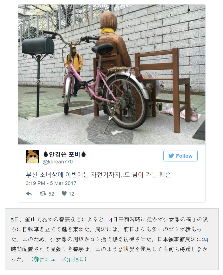 隣に置かれたゴミ像も同じ公道に置かれたものでそちらだけ撤去が難しいと言う事を受けて今度は釜山市長が親日派と罵られることに…