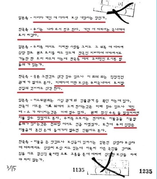 また、この日公開された外交文書には65年韓日請求権協定に関連して、「個人請求権」を巡る両国の過去の認識を垣間見れる内容も入れられた。尹錫悦(ユン・ソクヨル)大統領は3月21日の国務会議で「韓日請求権協定は韓国政府が個人請求権を一括代理して日本の支援金を受領するとされている」とし、個人請求権が消滅したという趣旨で言及した。