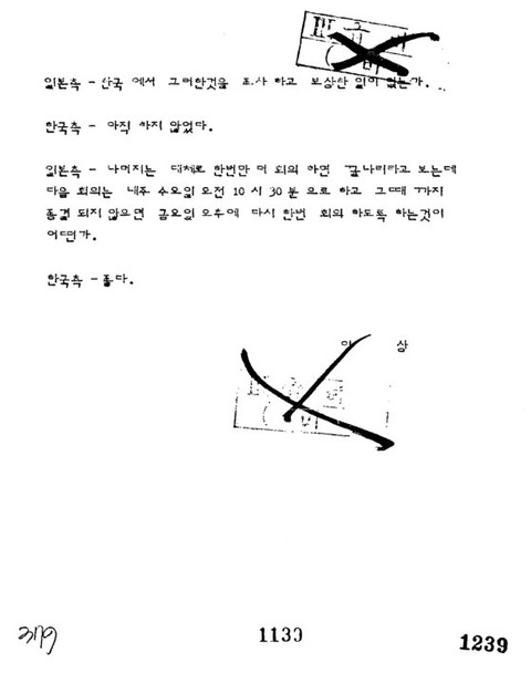 韓国側:補償金支給方法の問題だが、人員と金額の問題がある。とにかくその支給はわれわれ政府の手でしたい。