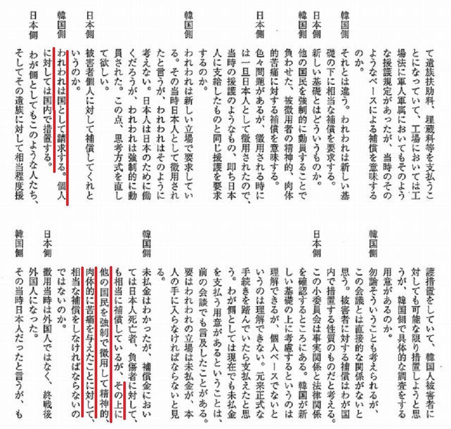 韓国側:われわれは国として請求する。個人に対しては国内で措置したい。