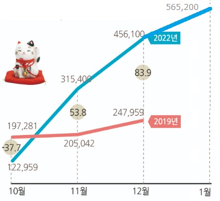 달해 다른 목적지의 2배 이상이 되었다고 소개. 일본과 대만이 30% 이상으로 한국에 이어 많아,