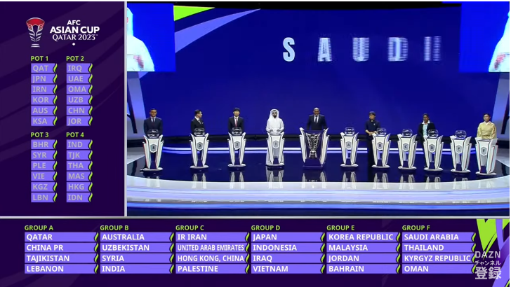 アジアサッカー連盟(AFC)は7日、5月11日に行われるアジアカップの組み合わせ抽選会に向けたポット分けを発表した。