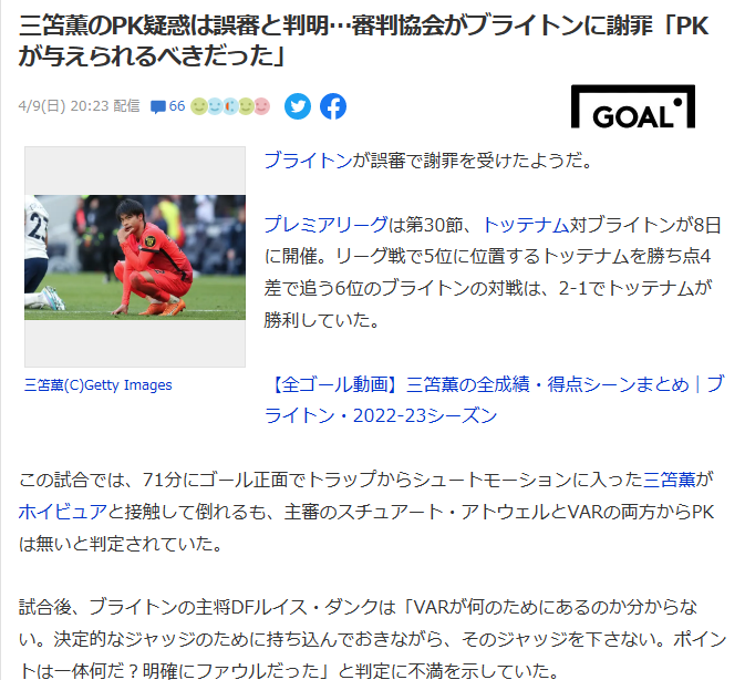 https://topics.smt.docomo.ne.jp/article/soccerdigestweb/sports/soccerdigestweb-129544ブライトンが誤審で被害を受け、審判団が謝罪するのはこれで3回目。