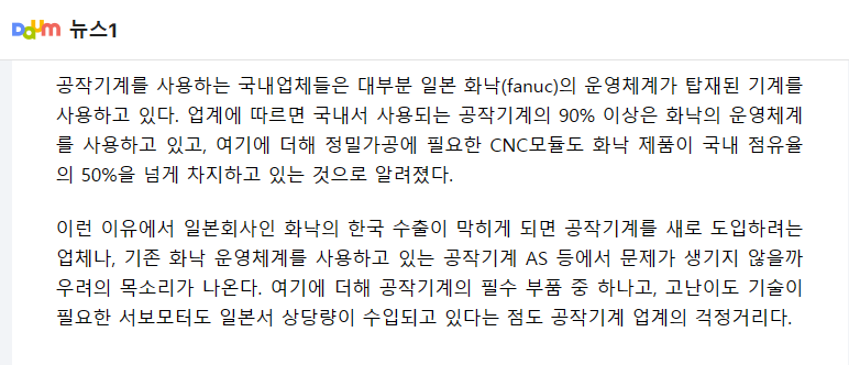 ★韓国の工作機械のほとんどが日本のファナック製のものを使用。