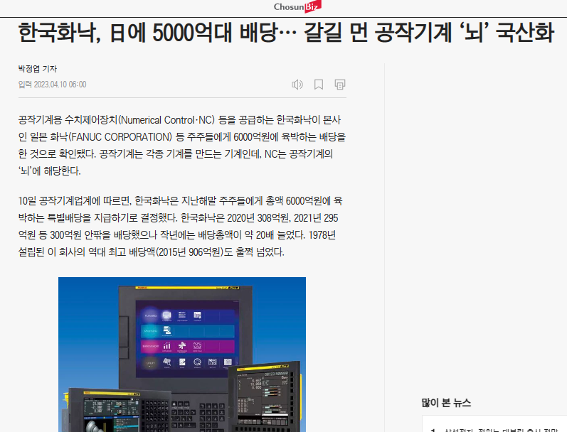 韓国ファナック、日本に5000億ウォン以上の配当…はるかに遠い工作機械の「頭脳」国産化