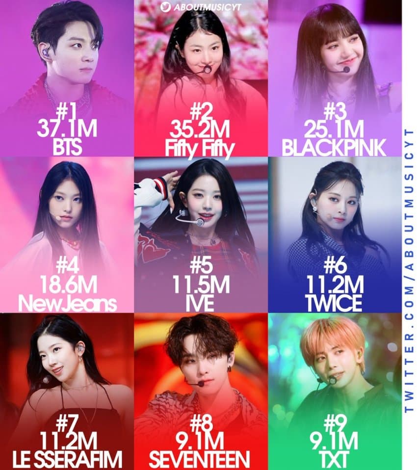 アメリカで大人気とか言う FIFTY FIFTY は日本の楽曲ランキングでも一応出てきたけど、再生数が桁違いやね。