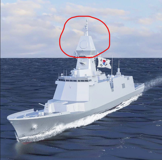海自のもがみ型フリゲートより細くて小さな船体の高所に、防空艦レベルの大型レーダーを設置したとても韓国らしい船が出来ました (笑)
