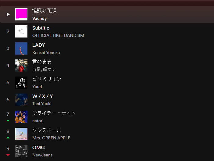imase の「Night Dancer」は7ヵ月前、RADWIMPS の「すずめ」は6ヵ月前、米津玄師の「KICK BACK」は6ヵ月前なので、このランキングには入ってきません。