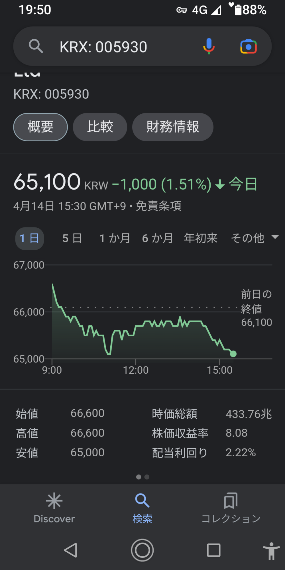 SAMSUNG株価高騰と書き込みしたあとの