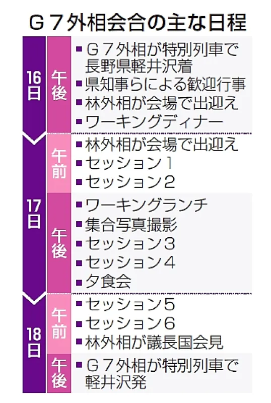 G7外相会合、軽井沢で開幕 ワーキングディナーで結束確認