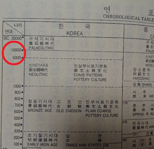 前一万年以降を見ると、前一万年から前五千年までの5千年間、韓半島は空白になっていました。