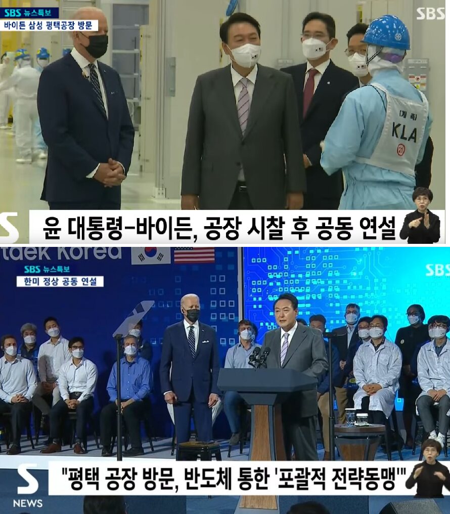 바이든 대통령의 한국 방문 첫 일정은 삼성전자 평택공장 방문이었다. 앞서 삼성전자는 미국에 170억 달러 규모의 투자를 약속했고 바이든 대통령은 방문 현장에서 "텍사스에 3000개의 새 일자리 창출 효과"라며 감사를 표했다. 현대차 또한 미국에 총 100억 달러 투자를 약속하면서 바이든 대통령은 이번 방한 기간 자국 국민에게 보여줄 성공한 비즈니스 외교라는 성적표를 챙겼다.