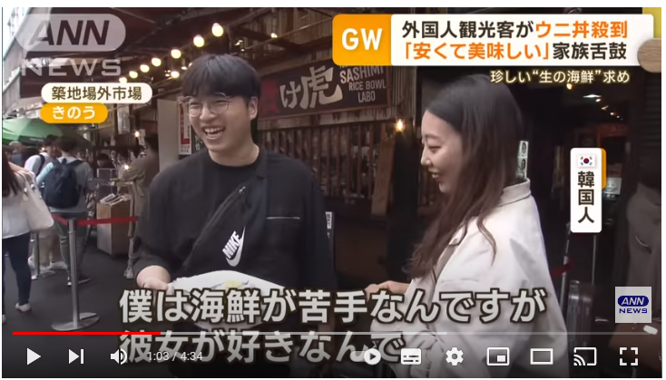 続いて「日本旅行に来てお金を少なく使っている、これからはその地域の名物料理を食べる等、どうかお金をもう少したくさん使ってほしいというもの乞い行為にしかに見えない」とし「日本はとても(経済的に)厳しいようだ」とした。