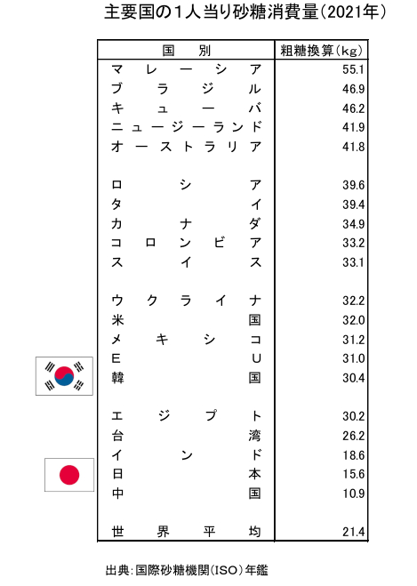 結論:1日あたりの摂取量ベースでみると、韓国人のほうが塩分摂取量が多く、糖分摂取量も多い。1日あたりのカロリー摂取量は韓国人が日本人の1.25倍。韓国人のほうが小柄だが日本人より多く食べるようだ。