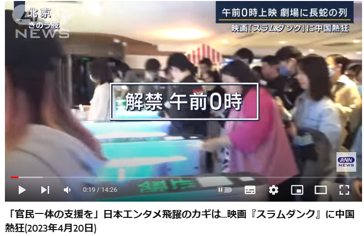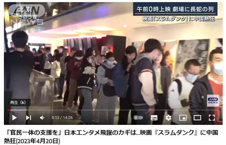 『THE FIRST SLAM DUNK』中国公開前日の4月19日夜11時、重慶市のある映画館では30-40代の男性らが赤いバスケのユニフォームを着て列を作った。映画公開を控えて、あらかじめ並んでいるのだ。この日、中国版カカオトークに該当する「微信」(ウェイシン、WeChat)は「スラムダンクの映画チケット買います」というメッセージで埋まった。特に、子どものころスラムダンクのコミックを読んで育った「80後」(バーリンホウ、80年代生まれ)らが映画チケット購入に乗り出した。『SLAM DUNK』の原作者・井上雄彦氏は、ツイッターに「中国でたくさん応援してもらえてうれしい」と書き込んだ。