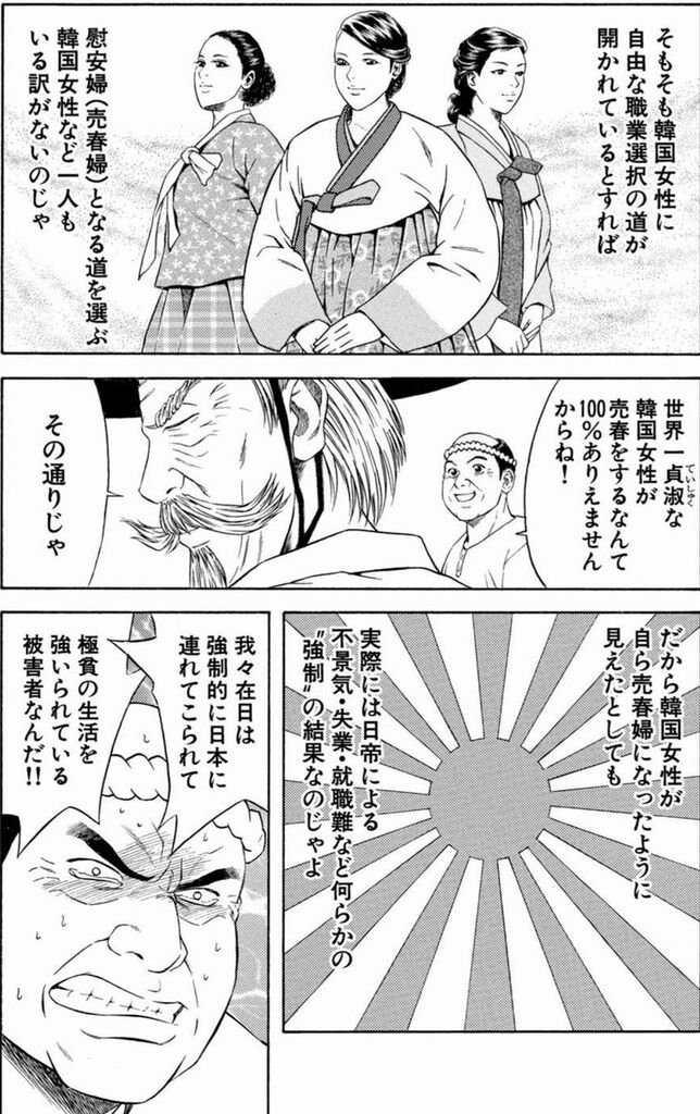 これも朝鮮流。韓国人の発言をそのまま描くと、「ギャグ漫画」が出来上がる。