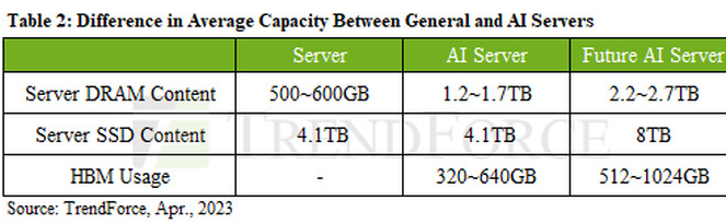 AI GPUで処理する莫大な量のデータを入/出力するためには、AIサーバー&CPUともにはるかに大きな容量のメモリとストレージを装着しなければならない。 そのため、マイクロンが最近の業績発表会で、AIサーバーは一般サーバーに比べて8倍のDRAMと3倍のNANDが必要だと話した。
