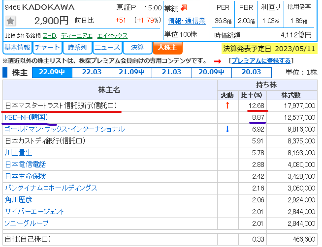 第2位.カカオ系の投資ファンドKSD-NHが(8.87%)- 22