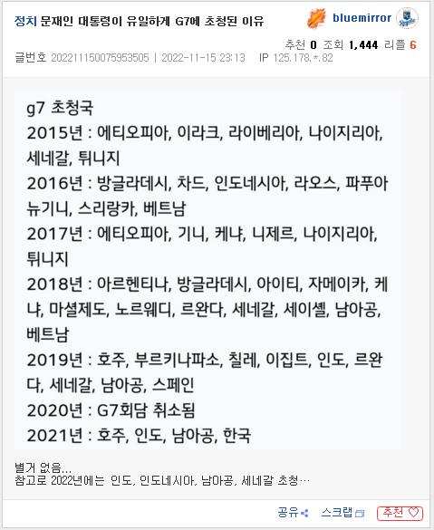 >한국은 2년 연속 G7 정상회의에 초청받았다"며 이같이 말했다.