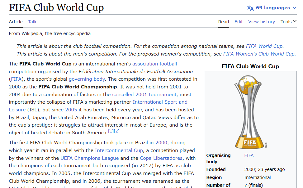 こうした背景もあって、FIFAが創設したのがこの大会の前身にあたる「FIFAクラブ世界選手権」である。>>31