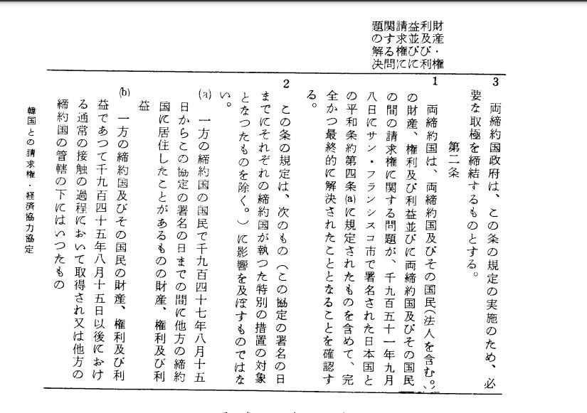 しかし請求権は韓国も消滅していますので謝罪と賠償を日本に要求する権利はありません