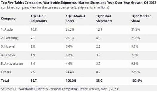 1분기 세계 태블릿 점유율