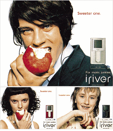Iriver는 mp3 업계 1위 기업이었고 당시 라이벌 애플을 가볍게 누르고 시장을 장악하며 사과를 씹어 먹는 광고를 걸었다.