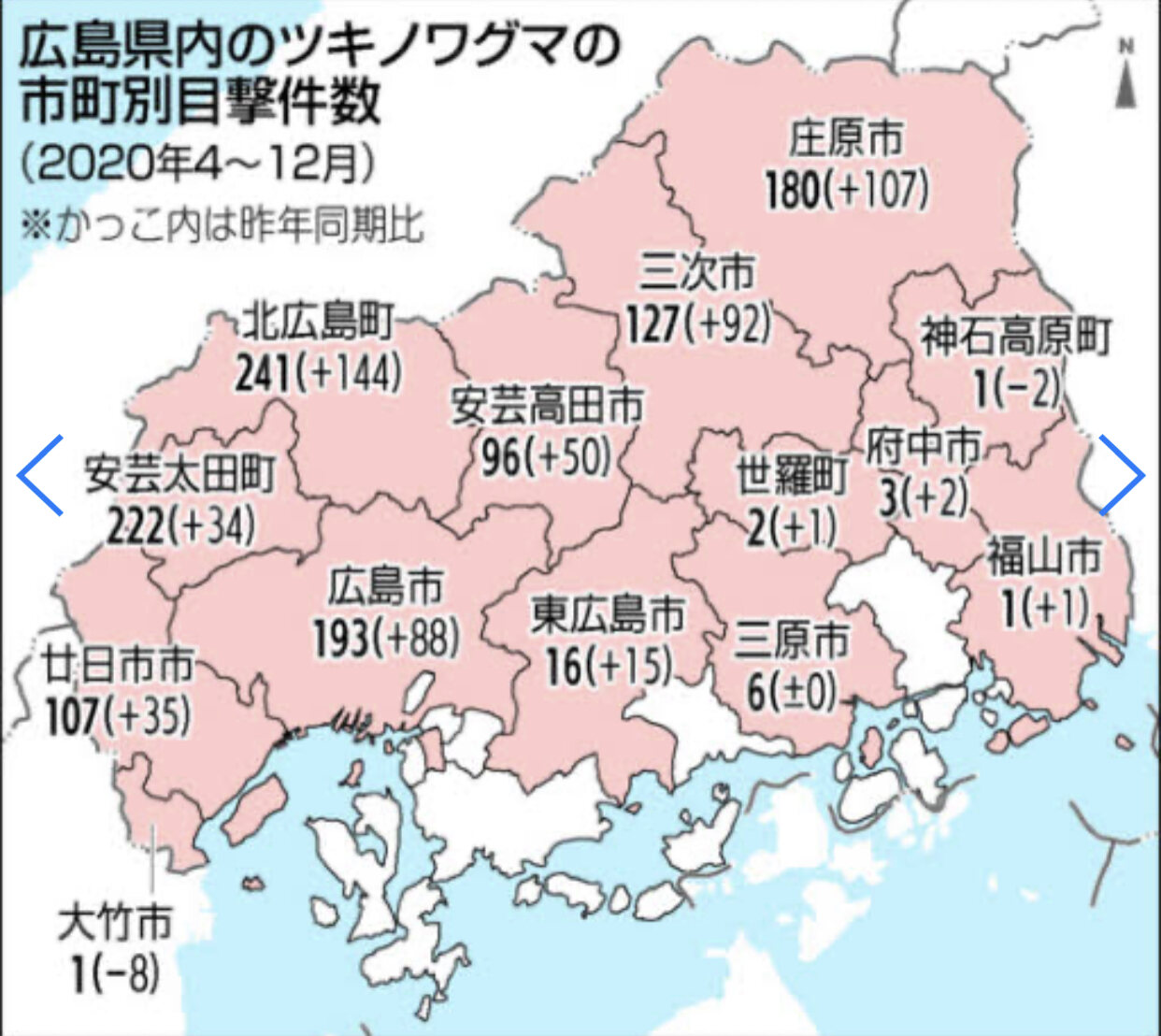 数カ所の海岸地域除きほぼ県の全土に🐻がw