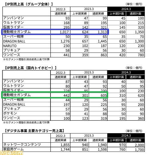 1313億円のうち、およそ半分弱が「ガンプラ」と見てよさそうです。>>99