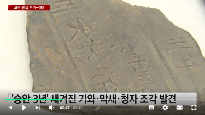 중국 금나라 장종의 연호 '승안 3년'이 새겨진 기와를 비롯해 원형 돌기 문양의 막새 기와, 고급청자 조각들 등이 이를 뒷받침합니다.