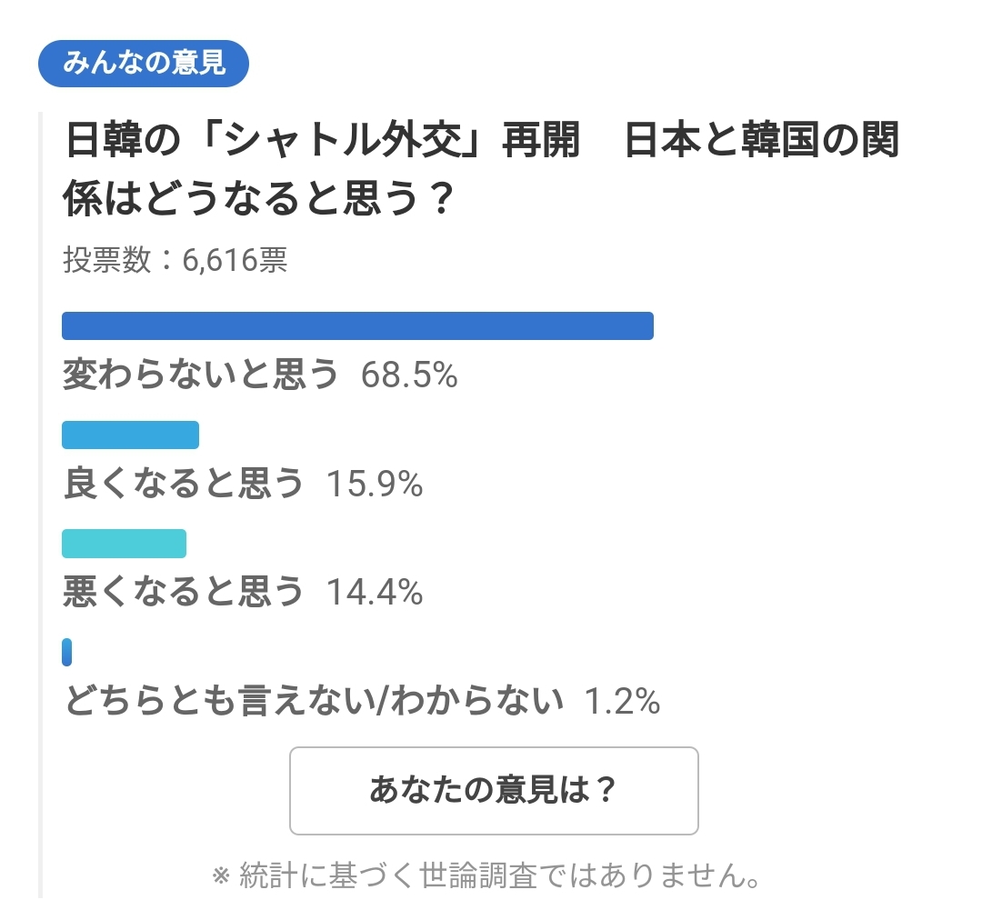 日本国民の半分以上、「韓日関係が改善されると思う」