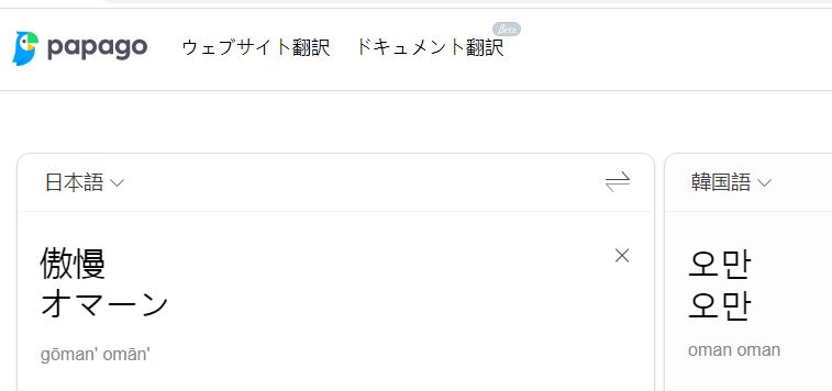 ちなみに、世界最高文字(笑)のハングルでは、「傲慢」と「オマーン」は書き分ける事が出来ないnida팽창주의와 평화주의의 대립인가.