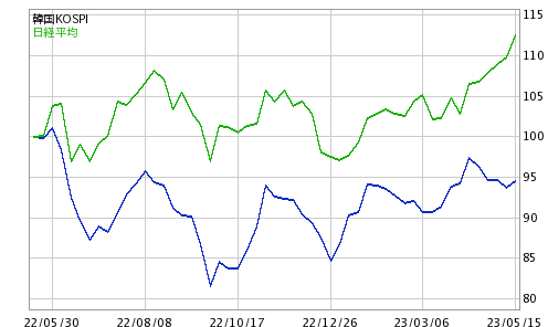南朝鮮の株式相場と日本の株式相場を