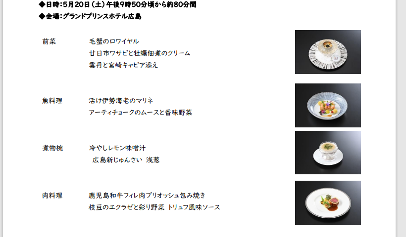 G7広島サミットにおけるおもてなし(2日目:カクテル及び社交夕食会) https://www.mofa.go.jp/mofaj/ms/g7hs_s/page1_001707.html