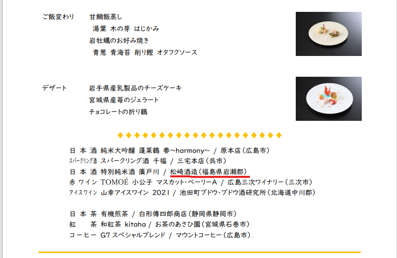 尹大統領が出席したG7夕食会に福島県産の酒が登場 https://www.donga.com/jp/home/article/all/20230522/4171546/1https://www.yomiuri.co.jp/science/20230214-OYT1T50119/