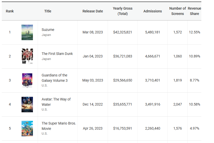 1位.suzume(548万人) 2位.スラムダンク(466万人)