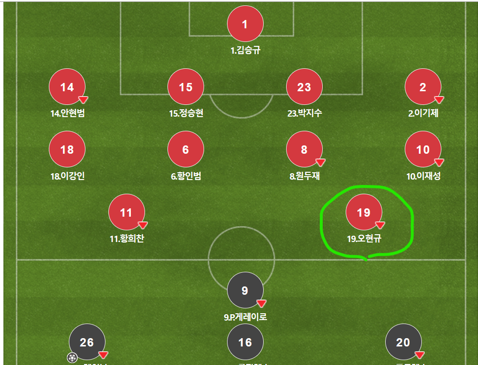 韓国人は、オ・ヒョンギュ、ヤン・ヒョンジュンともにベンチ外で最終試合も終了した