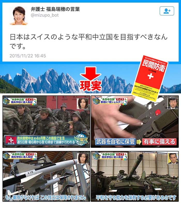 しかし、スイスは侵略者に対しては、国民総出で噛みつく用意もできてる。